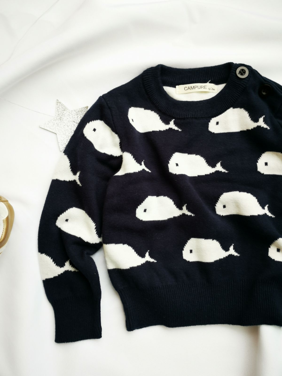 包邮ins款童装鲸鱼动物卡通图案男女宝宝儿童套头针织纯棉毛衣热门设计联盟服务商