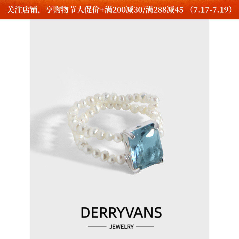 韩版ins冷淡风小众设计感戒指S925纯银蓝锆石珍珠女五一食指指环热门设计联盟服务商