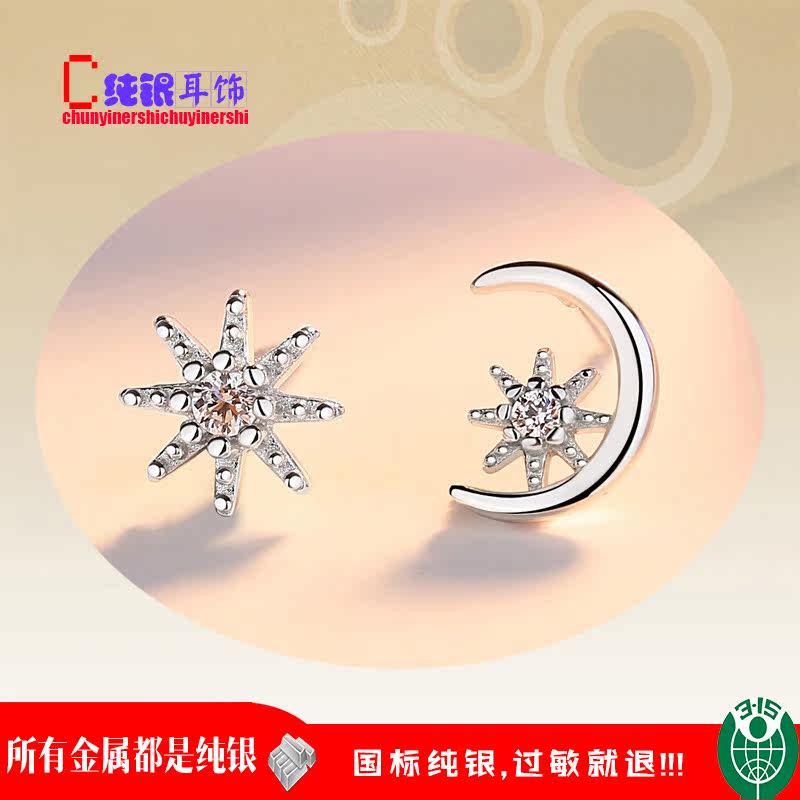 925纯银耳饰女夏韩国耳环星月不对称耳钉气质精致新款设计高级感热门设计联盟服务商