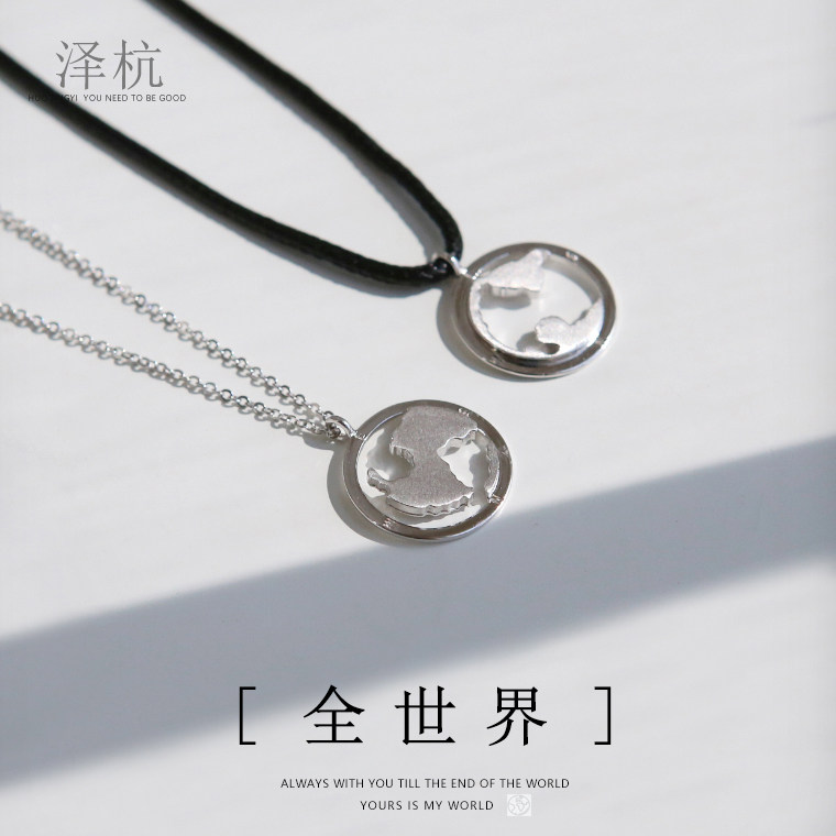地图情侣项链一对纯银拼接吊坠简约潮男女锁骨链小众设计学生配饰热门设计联盟服务商