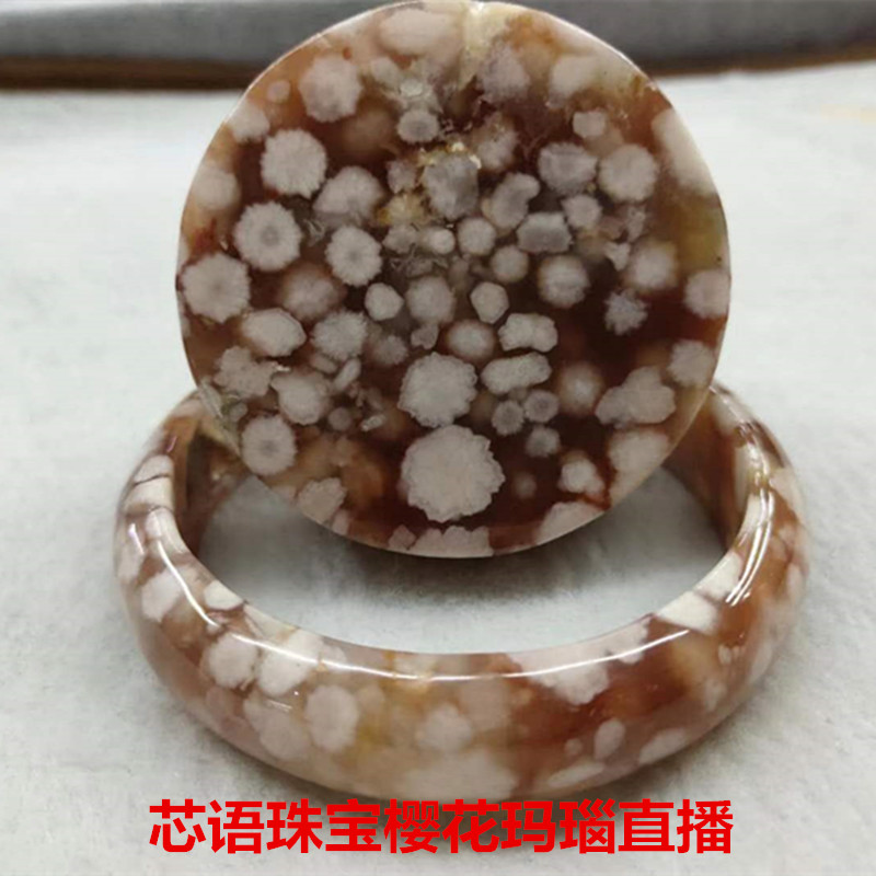 芯语珠宝樱花玛瑙淘宝直播手镯水滴吊坠方牌招桃花水晶天然冰透粉热门设计联盟服务商