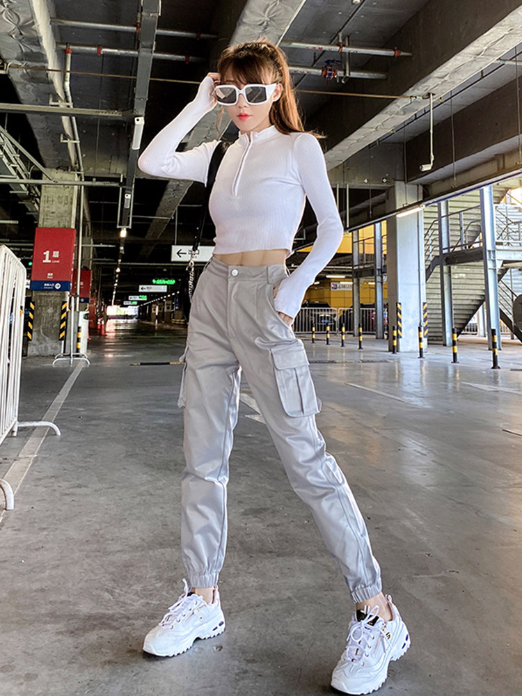 法式工装裤女显瘦高腰宽松炸街束脚休闲裤子ins潮欧洲站春夏薄款热门设计联盟服务商