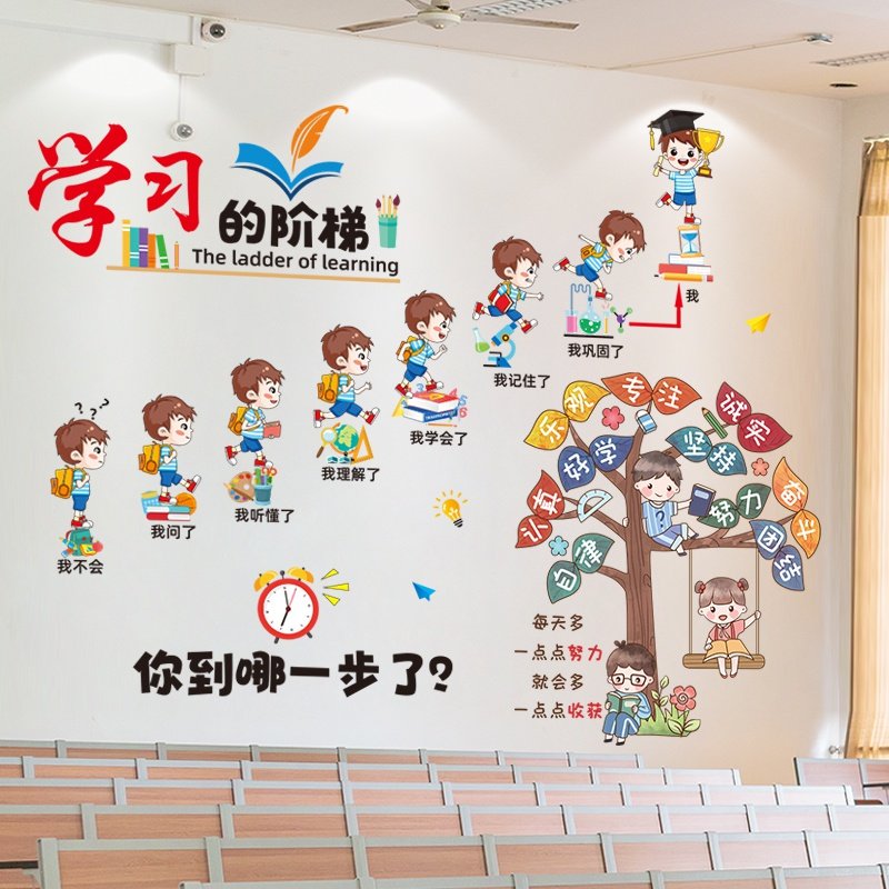 励志贴纸班级文化墙贴画学习培训辅导班教室创意标语装饰布置小学热门设计联盟服务商