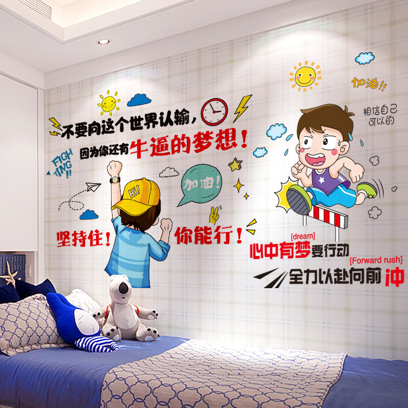卡通儿童房男孩卧室励志墙贴纸布置墙纸自粘壁纸海报装饰激励文化热门设计联盟服务商