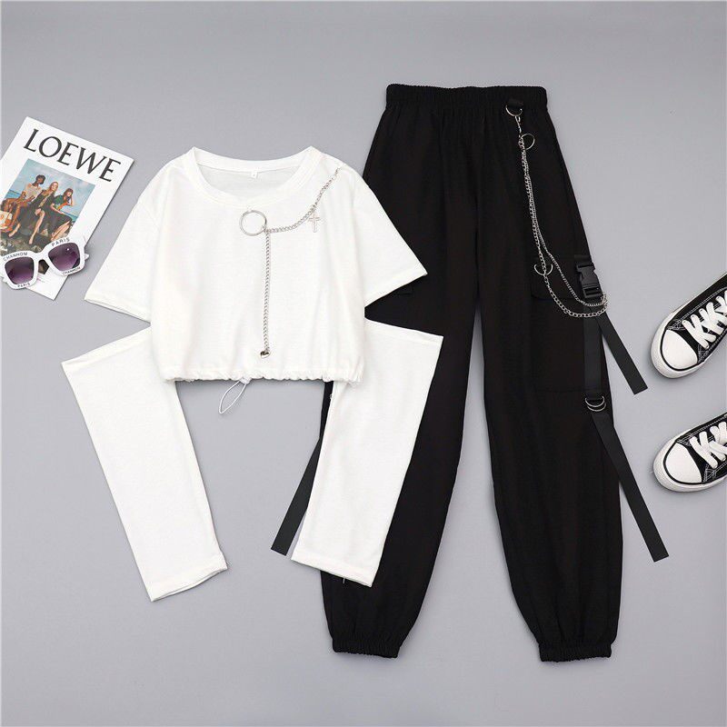 工装裤套装女bf风学生宽松小个子嘻哈束脚裤高腰显瘦休闲两件套潮热门设计联盟服务商