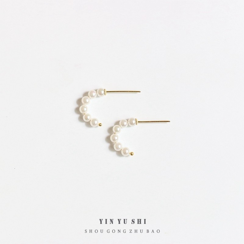 原创手工小众气质珍珠弧形耳钉银镀14k金极简设计感迷你珍珠耳环热门设计联盟服务商