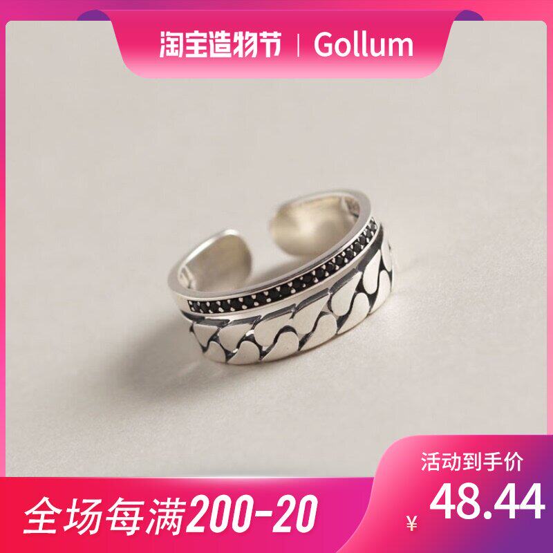 S925纯银饰复古戒指女可调节做旧个性双层链条开口指环设计感小众热门设计联盟服务商