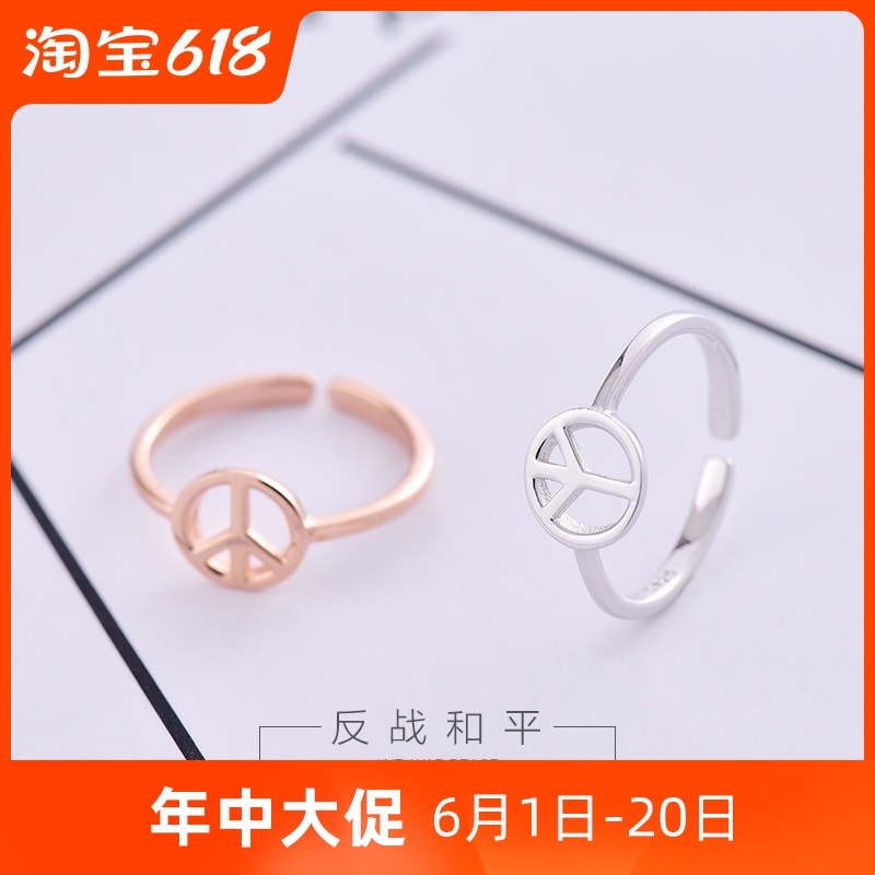 小众设计感反战和平标志纯银戒指女ins潮随形素圈戒指女S925开口热门设计联盟服务商