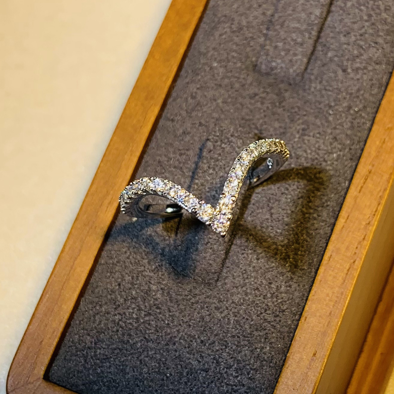 原创设计轻奢V字型镶嵌国产莫桑石纯银S925仿真戒指女套戒气质款热门设计联盟服务商