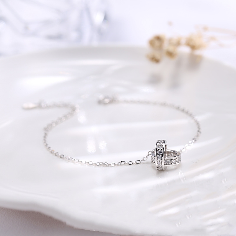 小红书款白金色双环手链女S925纯银玫瑰金色锆石圆环手饰不掉色热门设计联盟服务商