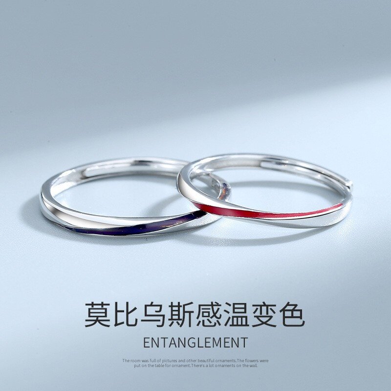正品莫比乌斯环纯银情侣戒指一对男女对戒小众设计情人节纪念礼物热门设计联盟服务商