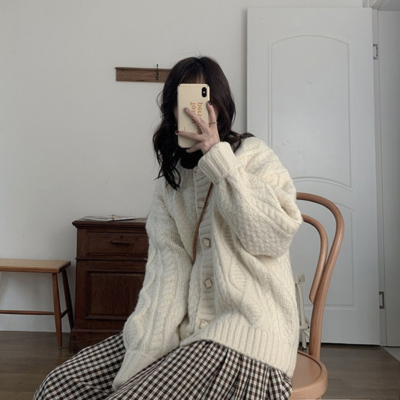 白色麻花针织开衫女宽松慵懒风软糯系毛衣外套外搭设计感小众秋冬热门设计联盟服务商