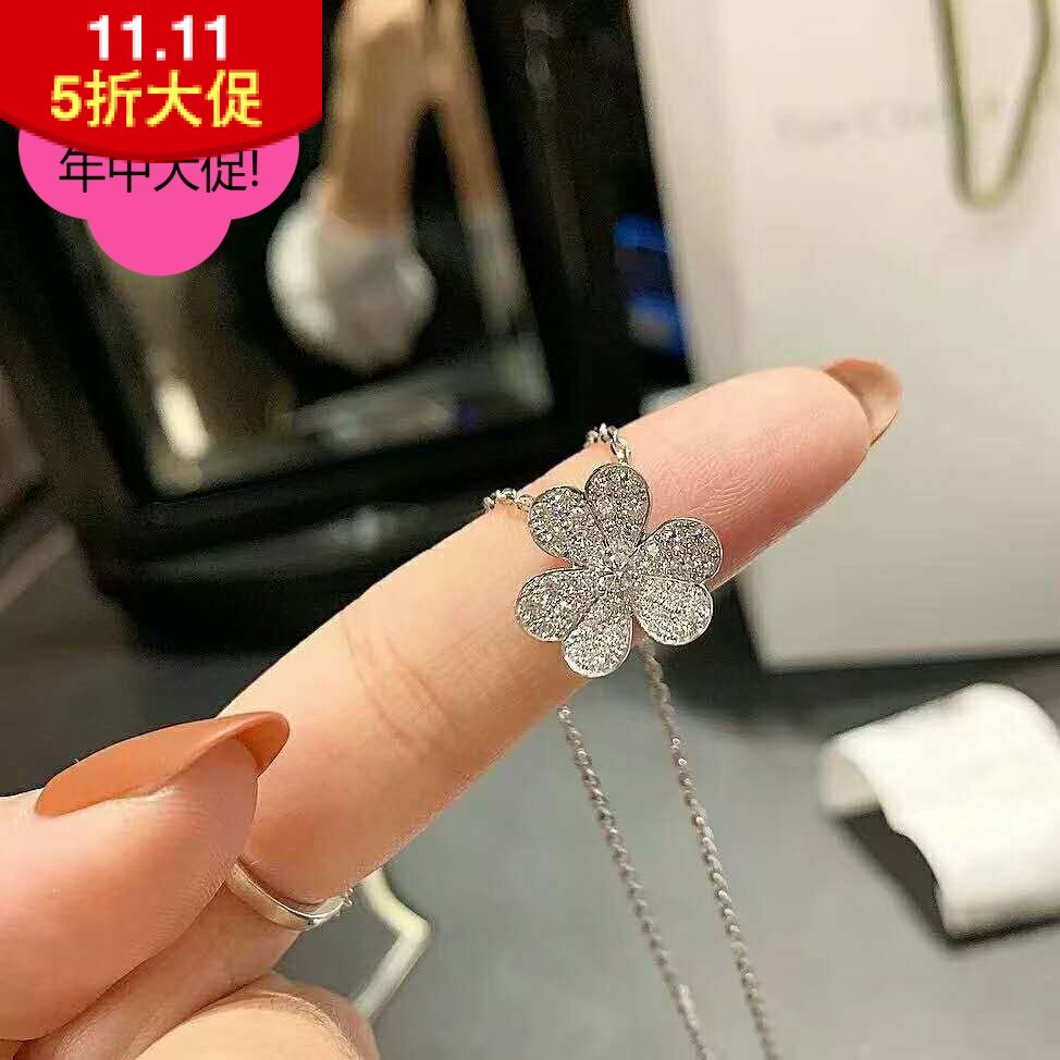 新品款幸福触手可及同款925纯银镶钻三叶草花朵项链女18K玫瑰金热门设计联盟服务商