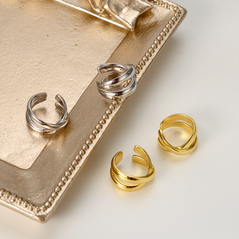 E5035 韩版S925纯银交叉线耳夹女ins个性百搭小巧双层缠绕耳夹热门设计联盟服务商