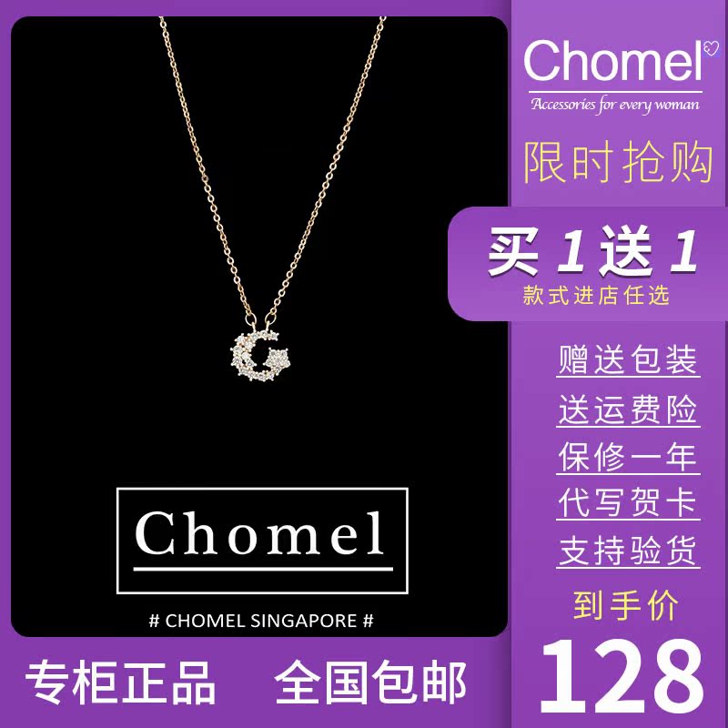 新加坡chomel项链女简约气质小众设计星月满钻吊坠轻奢好看锁骨链热门设计联盟服务商