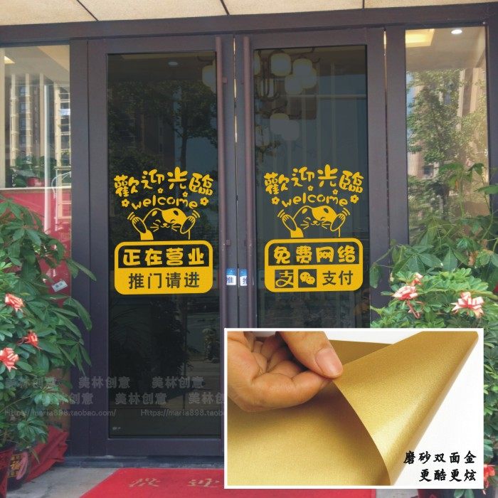 窗户玻璃贴纸墙贴欢迎光临正在营业贴纸欢迎光临标志标识门贴热门设计联盟服务商